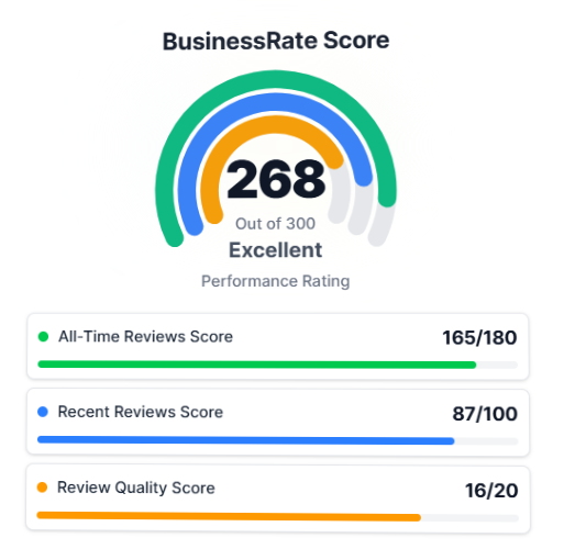 The "Best of Business Rate Award" is an annual recognition given by BusinessRate.com, a company that ranks local businesses based on verified customer reviews, primarily from Google, to highlight top performers in various industries for service excellence and customer satisfaction.
